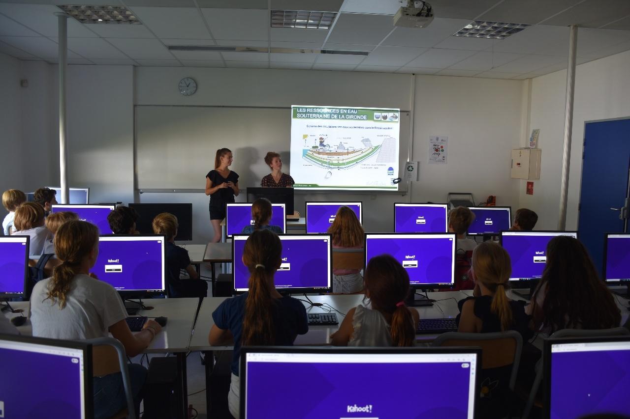 - Présentation des ressources en eau en Gironde et du cycle urbain de l’eau et la nécessité d’agir pour préserver la ressource sous forme de jeux (animé par Mr Omar Harrouz (Enseignant), et Clémence LA SCALA ainsi que Milena LOPEZ, étudiantes en Btsa Gemeau en 1 an).